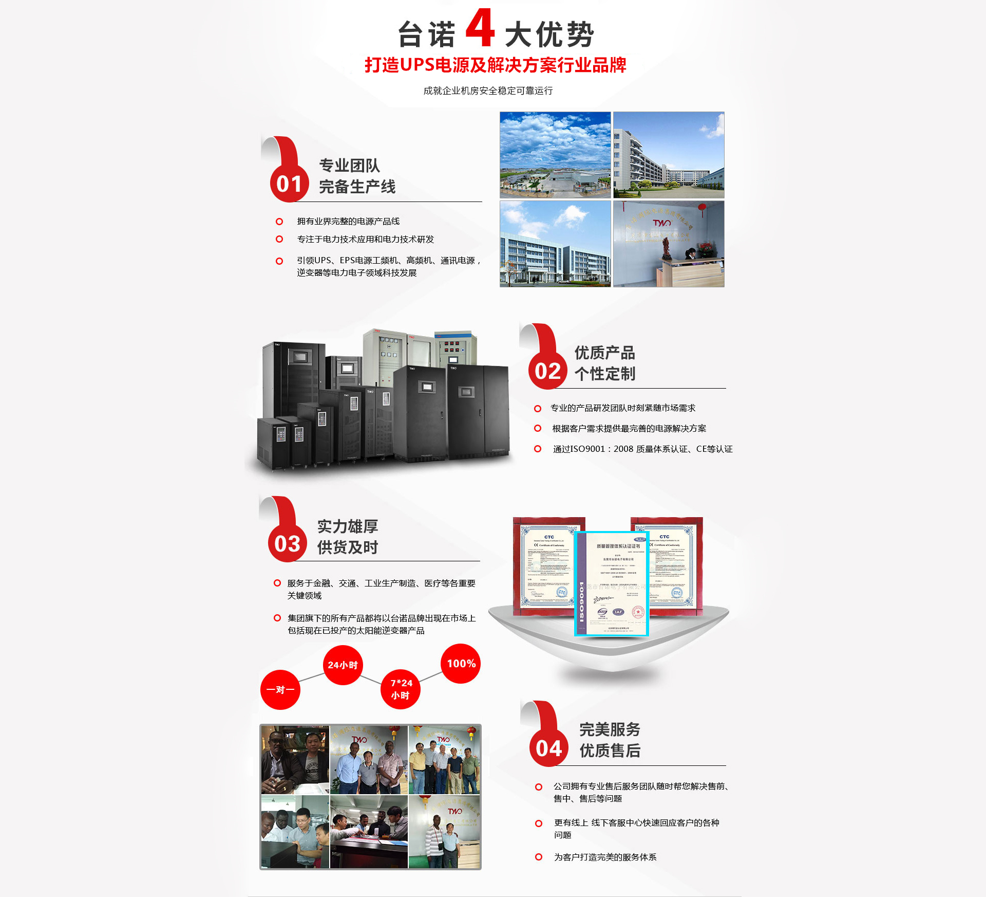 東莞市臺(tái)諾電子有限公司是一家以新能源、UPS不間斷電源、EPS應(yīng)急電源、交直流穩(wěn)壓電源、鉛酸免維護(hù)蓄電池、智能變頻電源、智能開關(guān)電源、智能一體化逆變電源、智能電源監(jiān)控系統(tǒng)的研究、開發(fā)、生產(chǎn)、經(jīng)營、銷售及技術(shù)推廣等多行業(yè)發(fā)展高新企業(yè)。公司位于東莞市毗鄰中國南方經(jīng)濟(jì)重地廣州、深圳,交通發(fā)達(dá),信息暢通。系廣東重點(diǎn)高新技術(shù)企業(yè)、東莞市創(chuàng)新型企業(yè)、也是中國電源協(xié)會(huì)、廣東省材料與器件產(chǎn)業(yè)技術(shù)創(chuàng)新戰(zhàn)略聯(lián)盟、 東莞市臺(tái)諾電子有限公司隸屬于臺(tái)諾集團(tuán),是一家有多年UPS集設(shè)計(jì)研發(fā)、生產(chǎn)銷售、售后服務(wù)為一體的公司,擁有業(yè)界完整的電源產(chǎn)品線,專注于電力技術(shù)應(yīng)用和電力技術(shù)研發(fā)。公司致力于向全球客戶提供性能好、品質(zhì)好的產(chǎn)品與服務(wù)。UPS、EPS電源工頻機(jī)、高頻機(jī)、通訊電源、光伏、逆變器等電力電子領(lǐng)域科技發(fā)展,創(chuàng)造可靠、節(jié)能的產(chǎn)品,致力于為客戶提供完善的電源解決方案。產(chǎn)品廣泛應(yīng)用于政府、金融、通信、教育、交通、氣象、廣播電視、工商...